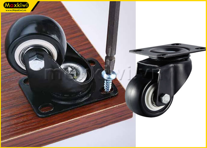 Loại càng xoay (có thể kèm khóa): có thể xoay tròn được 360 độ giúp dễ dàng chuyển hướng trong quá trình di chuyển.