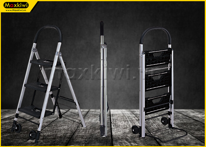 Đây là một sản phẩm khá lạ và được các hộ gia đình, cửa hàng yêu thích. Sản phẩm rất thông minh khi vừa có thể đẩy hàng vừa có thể biến thành thang xếp, giúp bạn lấy hoặc sắp xếp những đồ vật từ trên cao một cách dễ dàng hơn.