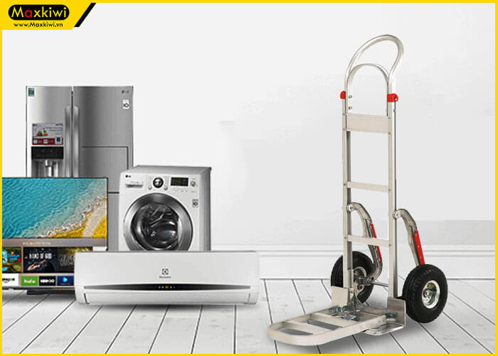 Đa dạng các loại thiết bị (máy giặt, máy lạnh, máy quạt…) với nhiều hình dạng, kích thước và trọng lượng khác nhau. Nhưng thường sẽ được bỏ vào thùng giấy, chỉ có một số ít được đặt trưng bày ở bên ngoài. Trong quá trình bán hàng, sẽ có những lúc bạn cần di chuyển vị trí các sản phẩm. Hoặc đưa ra xe tải để vận chuyển cho khách hàng. Và lúc này, xe đẩy hàng 2 bánh chất lượng sẽ phát huy chức năng hỗ trợ của mình.